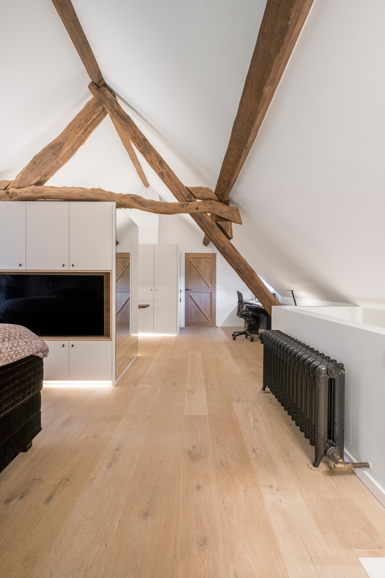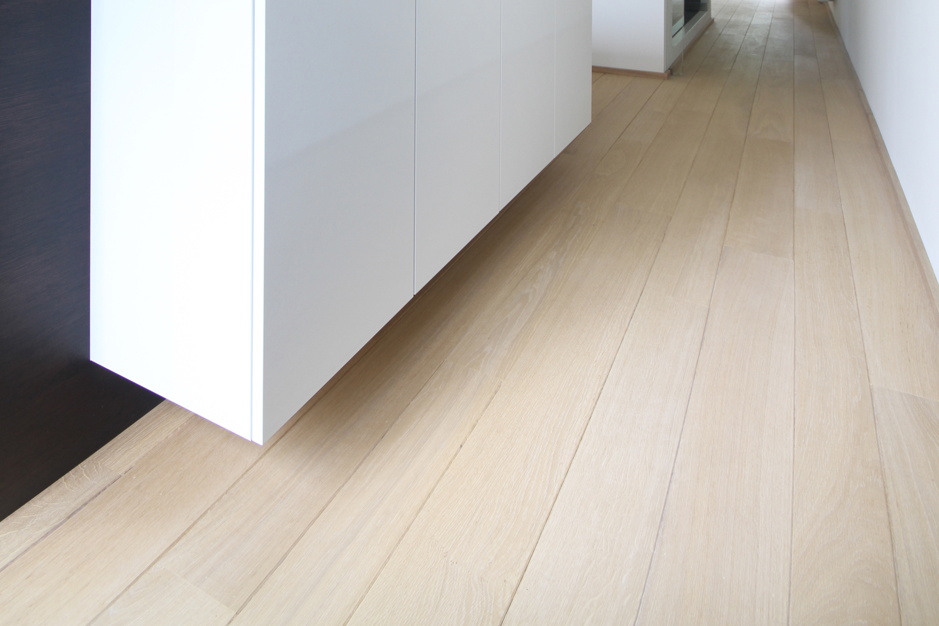 Wij creëren ook massief houten vloeren met een verouderde uitstraling. Deze verouderde houten vloeren, vervaardigd van Franse eiken, worden na het zagen gedroogd. De noesten en droogscheurtjes, gecombineerd met het beschadigen, geven de houten vloer een ‘geleefd’ uiterlijk en herinneren aan de oude, prachtige vloerdelen van vroeger.